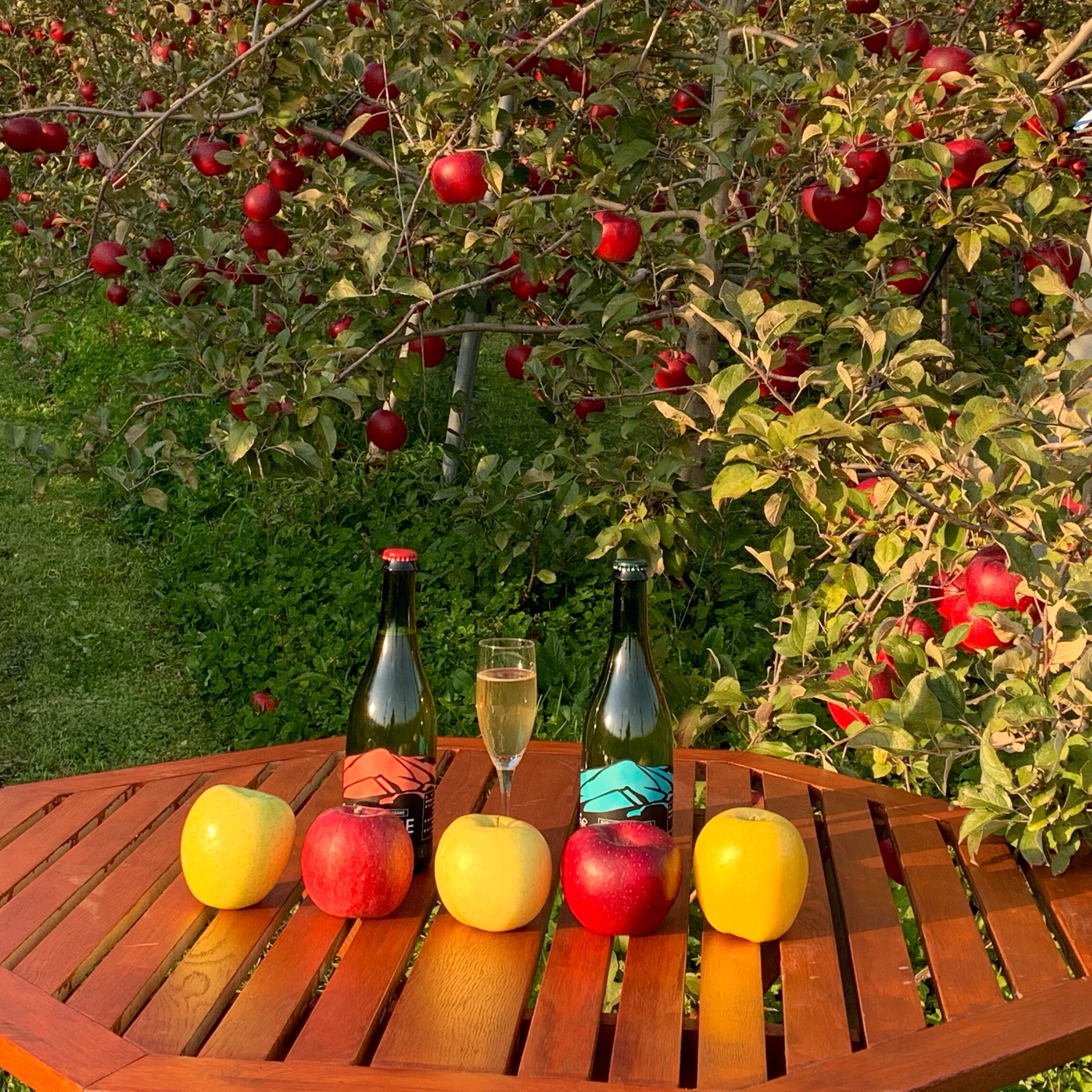 シードルはドライ、セミスイートは厳選した5種類のりんごのブレンドして瓶内二次発酵で作りました。